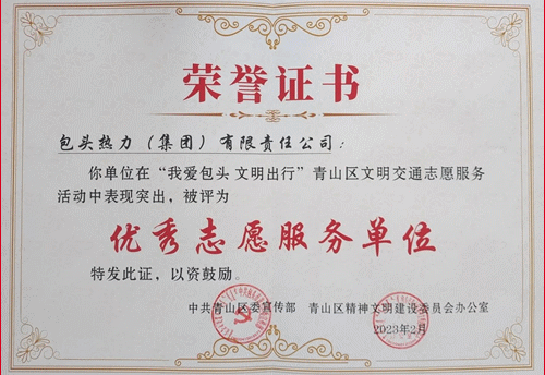 4.市熱力集團(tuán)榮獲2022年“我愛(ài)包頭 文明出行”文明交通志愿服務(wù)活動(dòng)優(yōu)秀志愿服務(wù)單位。