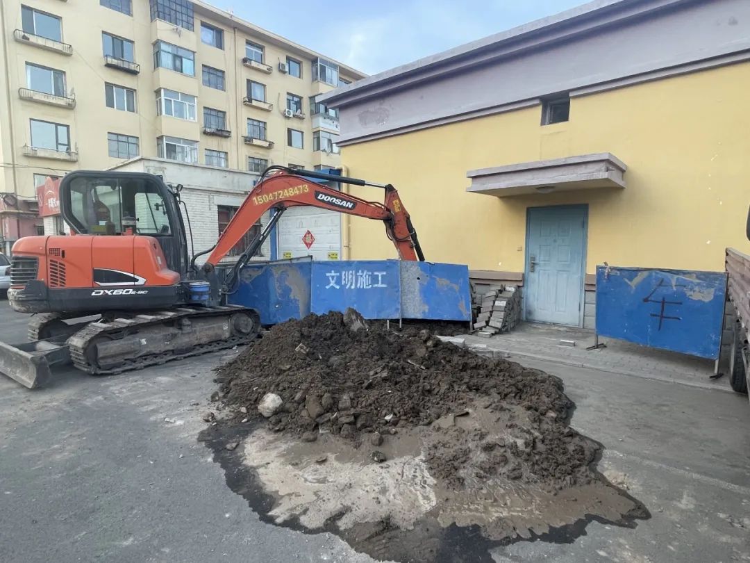 搶修現(xiàn)場大風呼嘯、黃沙漫天,惡劣的天氣并沒有影響搶修進度,搶修人員和機具第一時間全部到位。但堅硬的凍土和地下伴有排水管道和電纜,使搶修難度增大。
