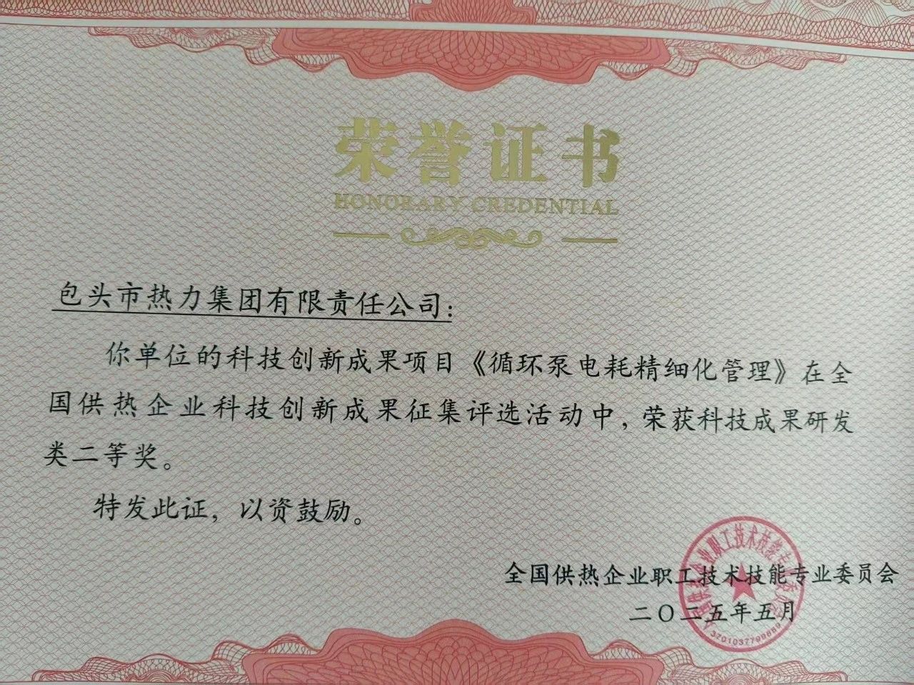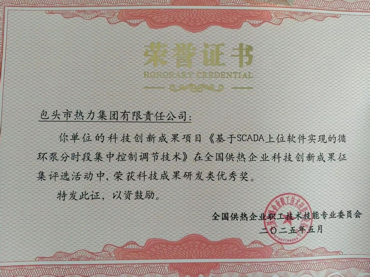 市熱力集團榮獲全國供熱企業(yè)科技創(chuàng)新成果獎