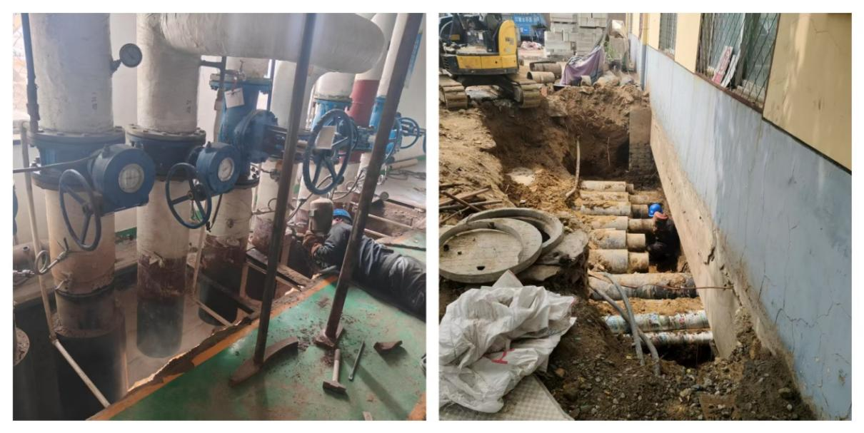 熱力站改造:消除隱患,筑牢安全防線。進入5月,熱力站環(huán)境改造、設備深度體檢等系統(tǒng)性工程全面啟動,一場針對供熱設施的“煥新行動”在各站點同步展開。技監(jiān)熱力站因緊鄰小學,過去多次出現(xiàn)孩子們鉆過柵欄進入院內(nèi)的危險情況——坑洼不平的地面散落著碎石,裸露的設備與開放的空間形成雙重安全隱患。此次改造直擊痛點,不僅將坑洼地面整體平整硬化,更換上了防護等級更高的柵欄門,從物理屏障到空間管理實現(xiàn)全方位升級,既杜絕了無關人員擅自進入的可能,也讓熱力站的作業(yè)環(huán)境變得整潔規(guī)范。而106熱力站的隱患則藏得更深。工作人員在巡查時發(fā)現(xiàn),站外地面有輕微沉降,用工具敲擊水泥墊層,能聽到明顯的空洞回聲。當墊層被小心撬開,近半米深的塌陷坑洞赫然出現(xiàn),埋在其中的供熱管道早已“飽經(jīng)風霜”,外壁覆蓋著厚厚的銹層,局部銹蝕處甚至形成了大小不一的穿孔。