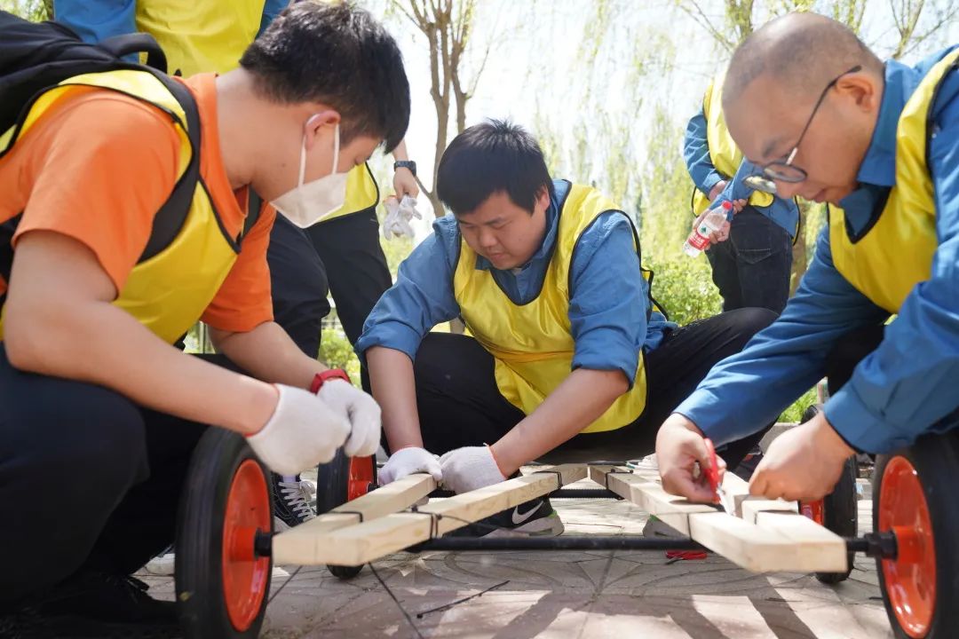在團建訓(xùn)練中,廣大團員青年在拓展教練的帶領(lǐng)下,以破冰分組、互動游戲為起點,定隊名、選隊長、亮隊號、唱隊歌,快速融入、組建戰(zhàn)隊,開始了F1賽車DIY制作。
