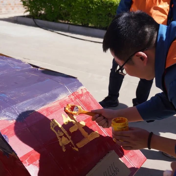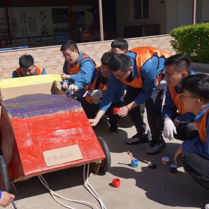 鐵絲、膠帶、紙板、車輪,面對著一堆零散的道具,大家積極參與其中、出謀劃策。車輛設(shè)計、文案編寫、宣傳推薦、舞蹈編排、施工制作、車漆噴涂,每名隊員都各展所長、各司其職,通過科學有序的分工合作、密切配合,傾心打造出屬于自己的“戰(zhàn)車”。