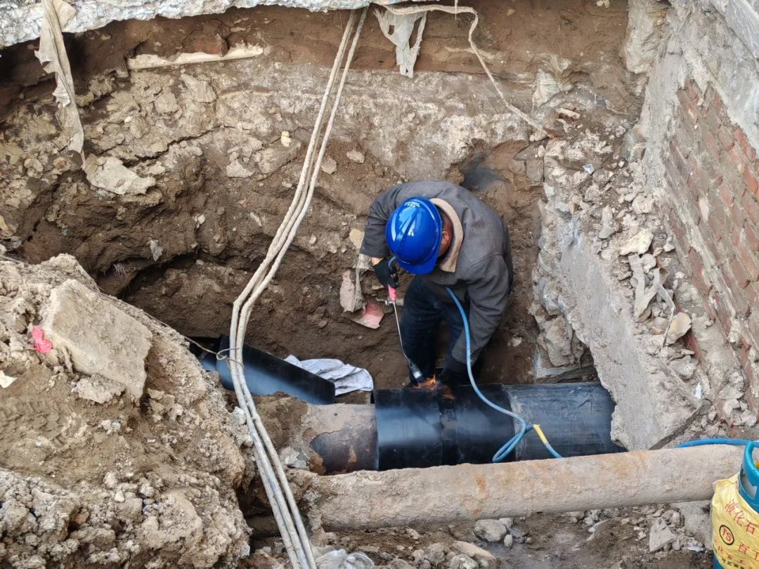 伴隨著發(fā)電機的轟鳴,管道拆除、焊接工作如火如荼進行中,當天21時左右,工作人員順利完成了管道的安裝焊接工作,所有焊接部位滴水不漏,嚴絲合縫,一次網(wǎng)閥門再次開啟,經(jīng)過連續(xù)11小時奮戰(zhàn),圓滿完成了一次網(wǎng)搶修任務,使富三、富四、富六街坊20多萬平方米小區(qū)恢復了正常供熱。