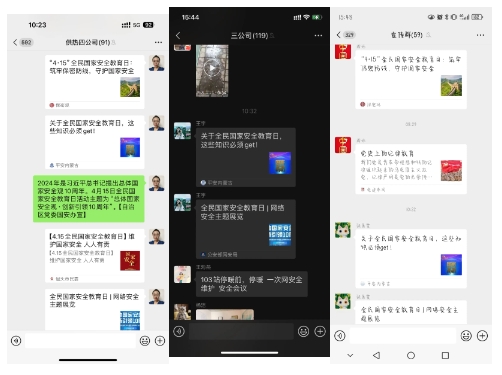 職工通過(guò)轉(zhuǎn)發(fā)鏈接、懸掛宣傳橫幅、集中學(xué)習(xí)國(guó)家安全教育宣傳資料等方式學(xué)習(xí)國(guó)家安全知識(shí),了解國(guó)家安全的重要性。同時(shí),廣泛普及了《國(guó)家安全法》《反間諜法》《反恐怖主義法》等相關(guān)法律法規(guī),引導(dǎo)全體職工自覺(jué)維護(hù)國(guó)家安全,進(jìn)一步樹(shù)牢國(guó)家安全觀念、自覺(jué)增強(qiáng)國(guó)家安全意識(shí)。