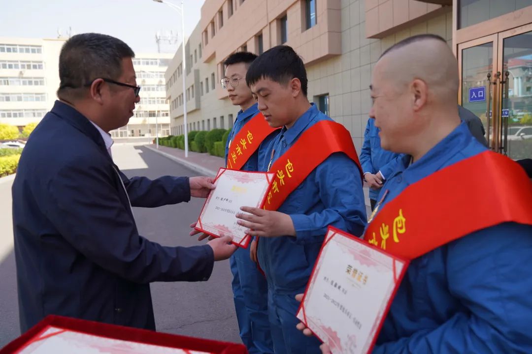 自治區(qū)五一勞動(dòng)獎(jiǎng)?wù)芦@得者趙慧娟,包頭市五一勞動(dòng)獎(jiǎng)?wù)芦@得者陳毅斌、張少卿、王超宇,包頭市工人先鋒號(hào)獲獎(jiǎng)集體供熱三公司檢修工段代表?xiàng)畛4韩@得表彰頒獎(jiǎng)。